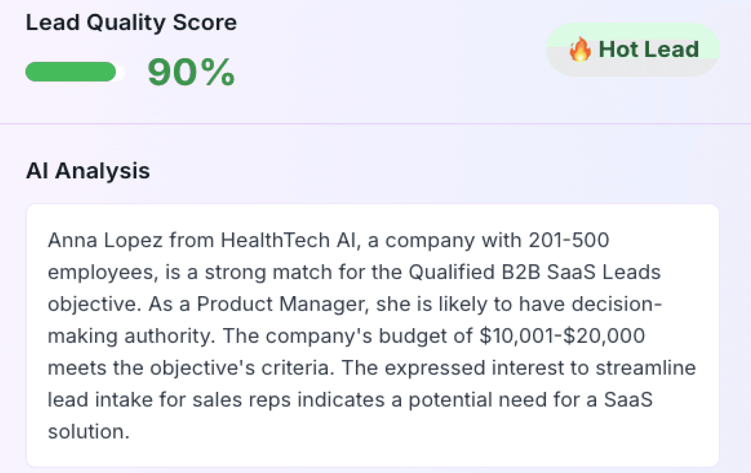 Instant scores and AI insights explaining why each lead qualifies (or not)