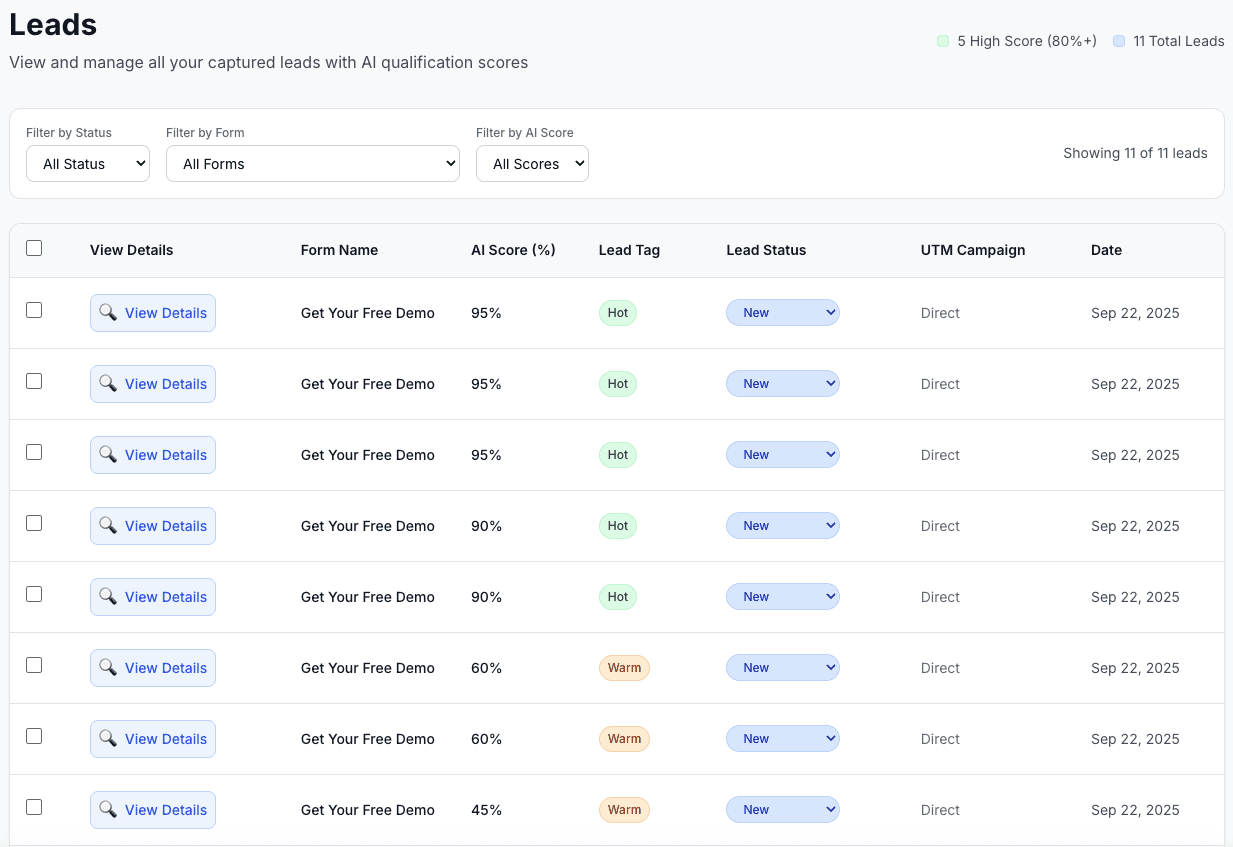 View, filter & manage every qualified lead in one place