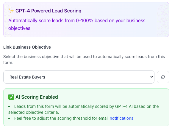 It combines your expertise with our technology. You set the rules, and our GPT-4 powered engine scores each lead by providing: